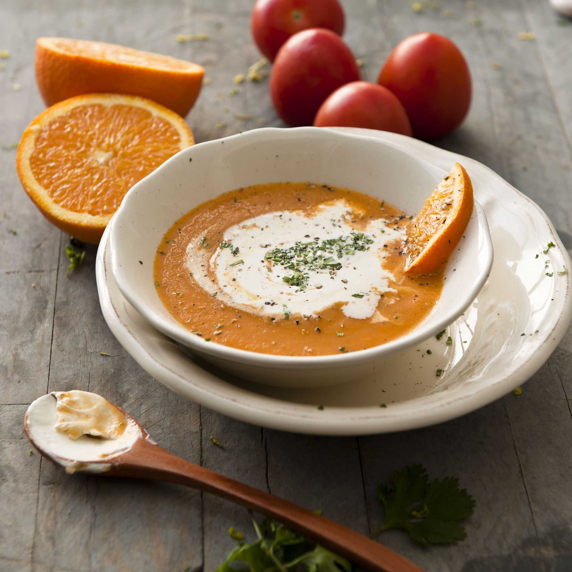 Anschließend pürieren und Orangensaft dazugeben. Mit Zucker, Salz und Pfeffer abschmecken. Suppe mit einem Klecks Joghurt verfeinern.
